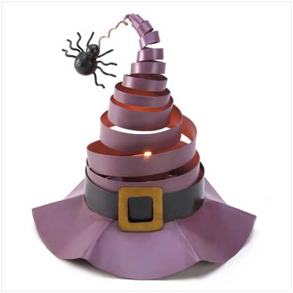 WP-39640 Four purple-toned panes of patterned glass cast a fascinating halo of rainbow light! A candle’s glow becomes magical as it shines from within. Handsomely styled cutout metalwork recalls the beautiful hand-wrought lamps of a Moroccan marketplace. Metal and glass. Candle not included. 4" x 4" x 10" high.