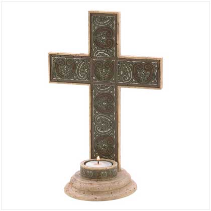 - Faith takes on a special significance when you display this captivating cross with pride! Every intricate detail has the look of hand carved stone, and is especially lovely when illuminated by a golden candlelight.