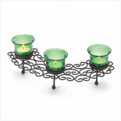 - Venetian Lace Tealight Holder. Delicate lacy spirals form a pretty cradle for three tealight cups in a vibrant emerald green. Just add candles to create a subtly romantic scene!