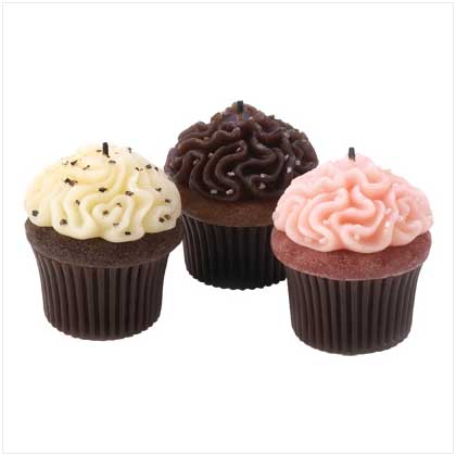 - SCENTED CUPCAKE CANDLE TRIO. Tickle your taste buds with the luscious aroma of bakery-fresh goodies... but keep the guilt away! Luscious little cupcake candles smell so realistic, you’ll be tempted to take a bite. A fun decoration that puts celebration into any day! Vanilla and Chocolate fragrances. Each burns up to 12 hours.