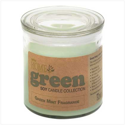 - Green Mint Soy Candle Fresh mint leaves add their subtly sweet and