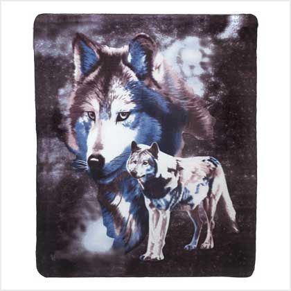 WP-39345 Bold graphics and vivid colors bring to life two snow-white wolves standing sentinel against a wintry night sky. Fabulous fleece blanket does double duty in your home as both a dramatic decoration and a touch of welcome warmth; cloud-soft fabric is wonderfully comforting on a cold winter's night. Machine wash cold; hang dry. Polyester fabric. 60" x 50". Retail Price: